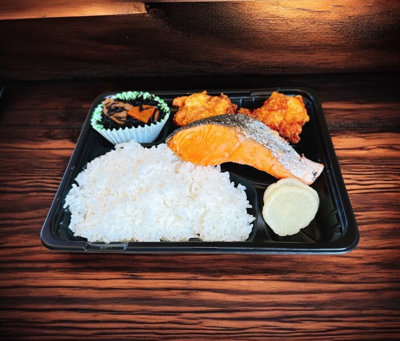 焼き鮭から揚げ弁当